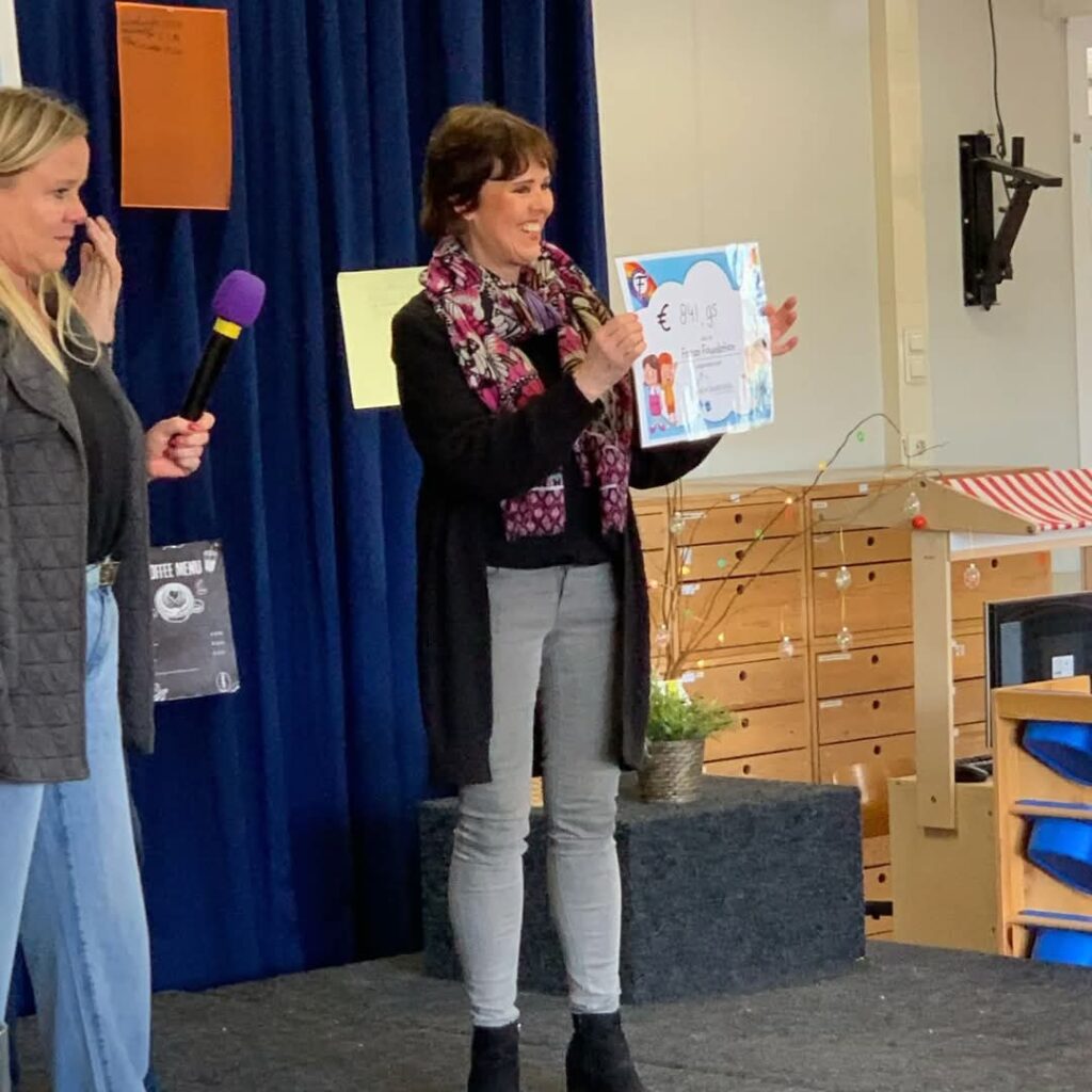 Velp, 11 april 2025 – De leerlingen van de Roncallischool hebben de afgelopen weken met veel enthousiasme en creativiteit geld ingezameld voor de Fabian Foundation. Tijdens de feestelijke afsluiting van het project Doe Goed, Voel Goed werd een cheque van maar liefst €841,95 overhandigd aan de stichting.